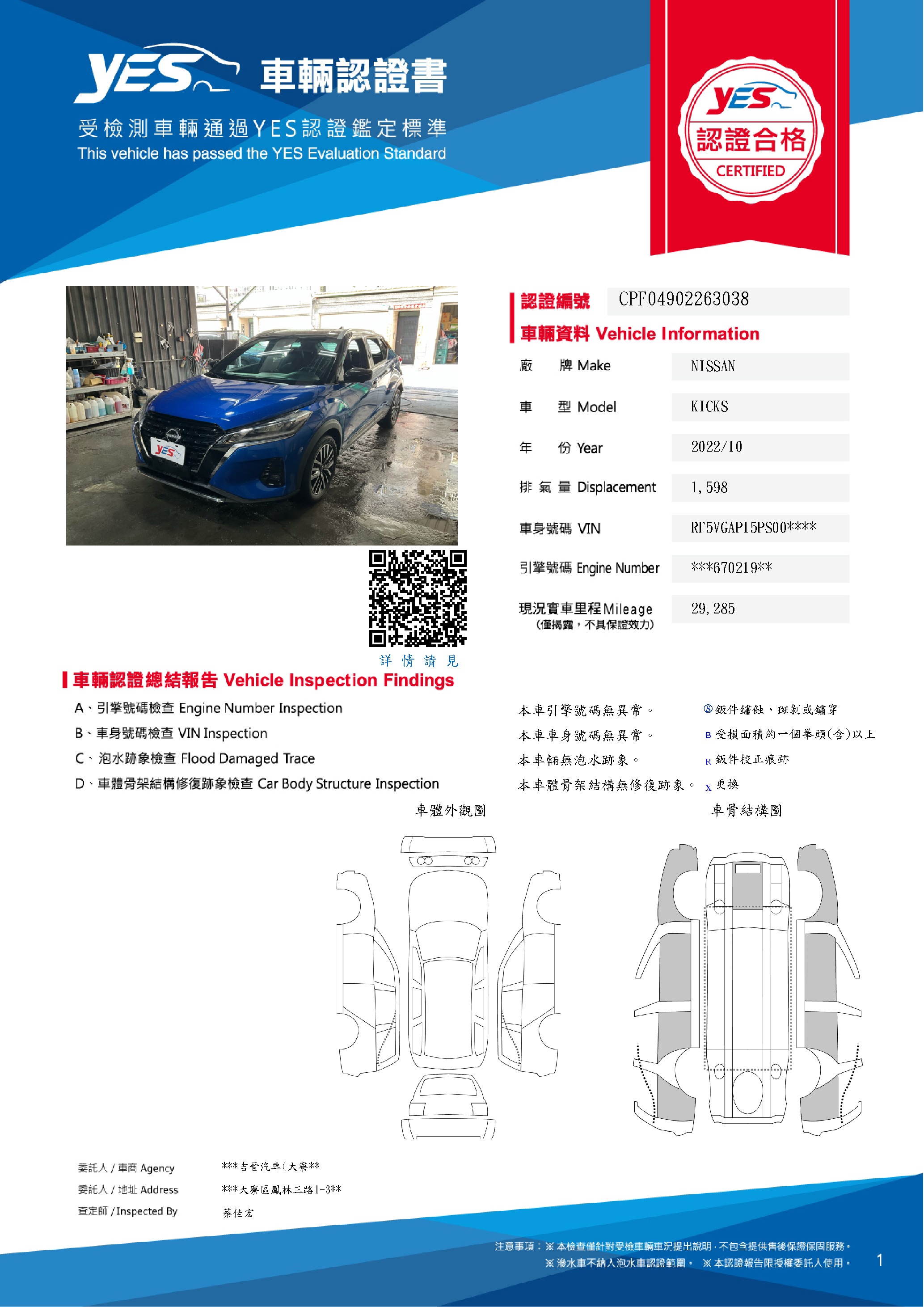 本車已由YES專業查定師完成 153 項檢測