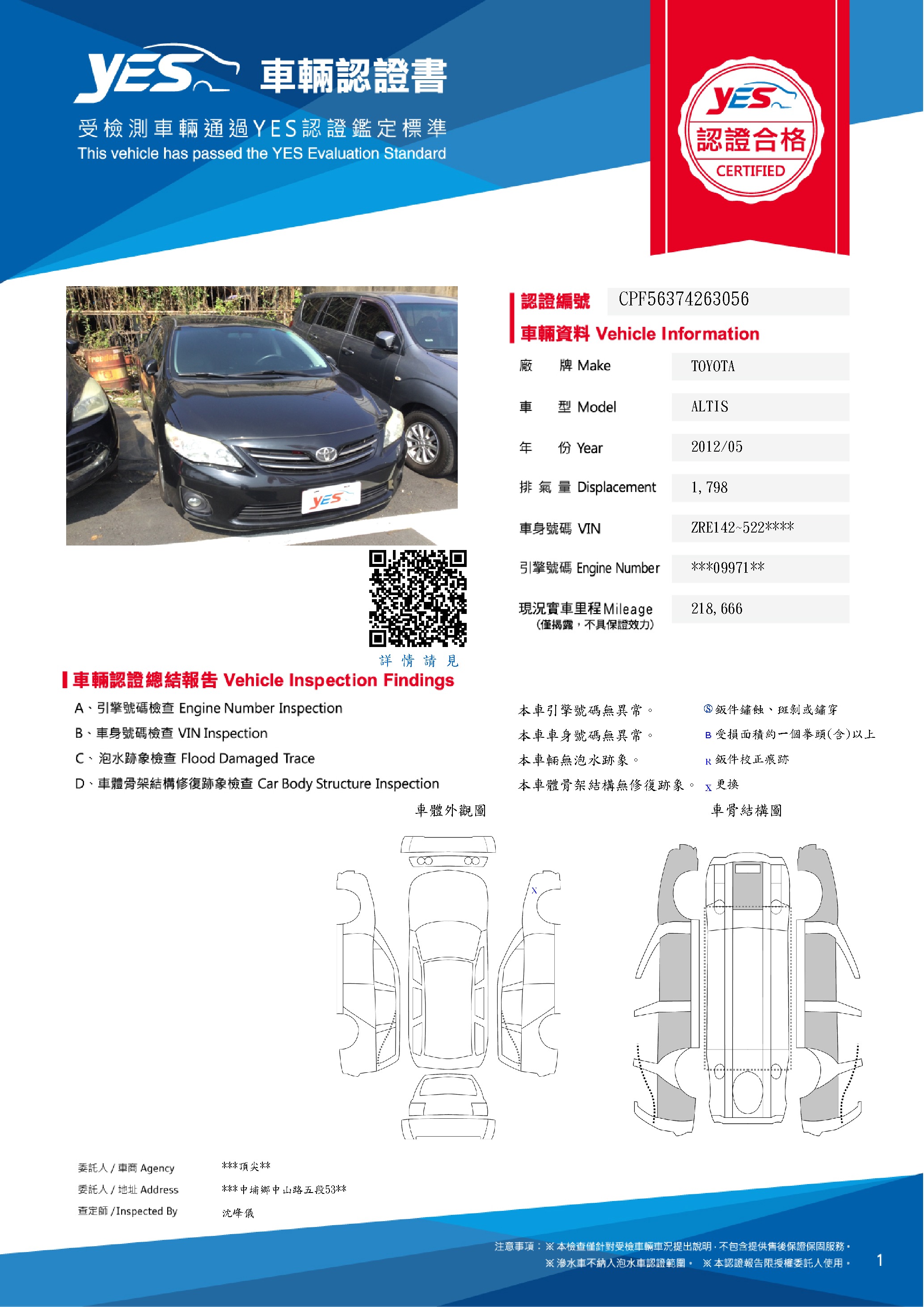 本車已由YES專業查定師完成 153 項檢測