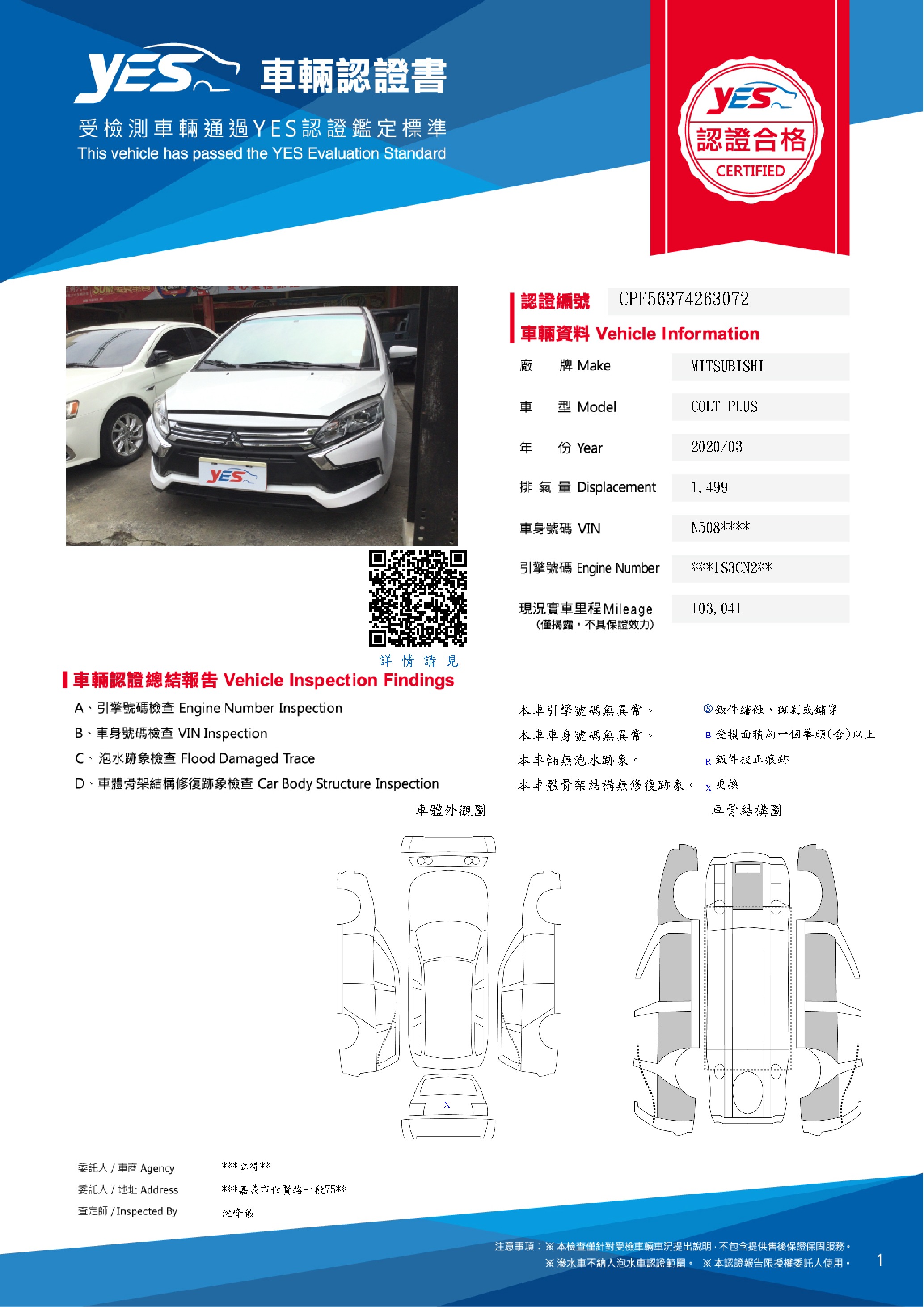 本車已由YES專業查定師完成 153 項檢測