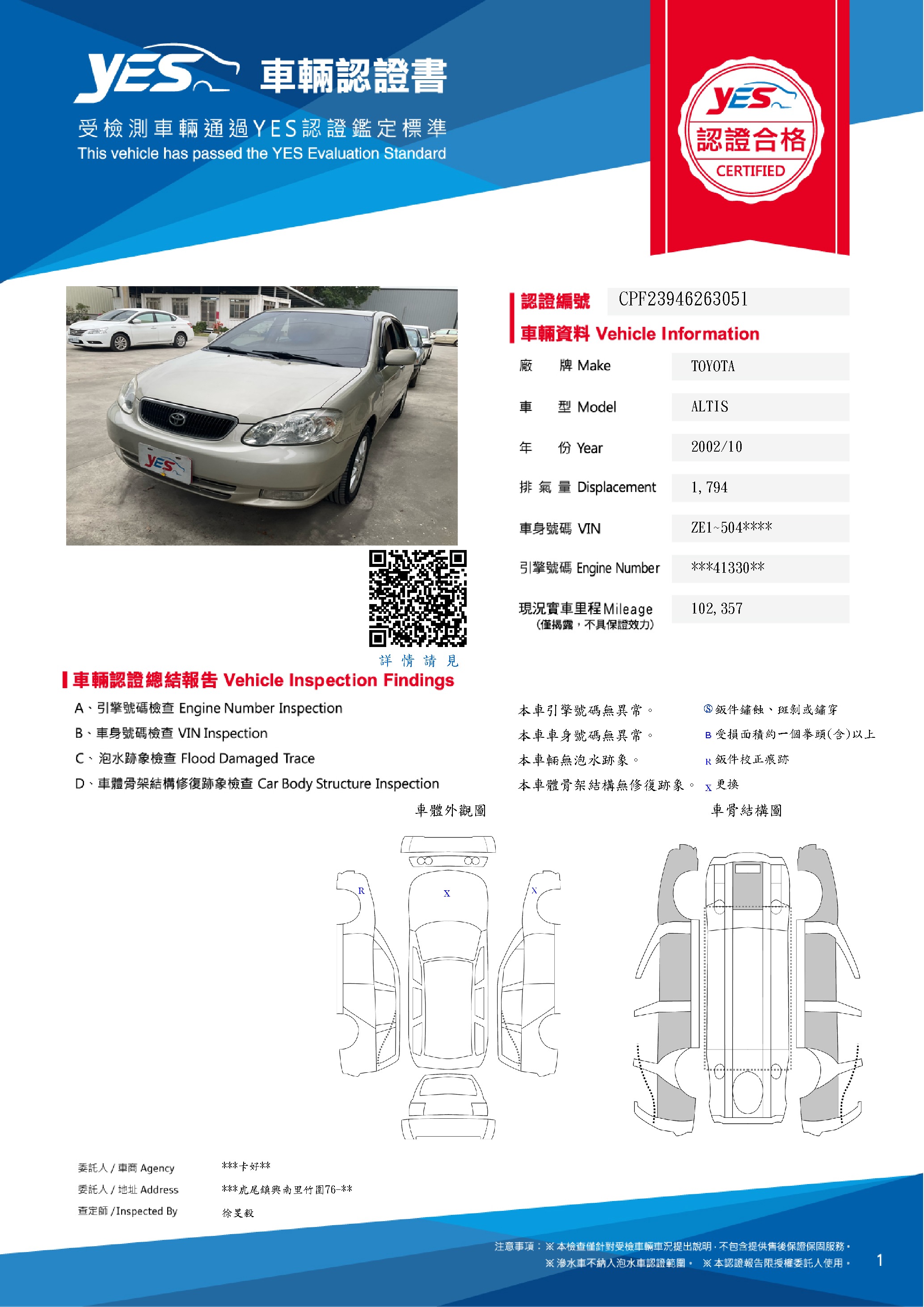 • YES專業查定師:徐旻毅