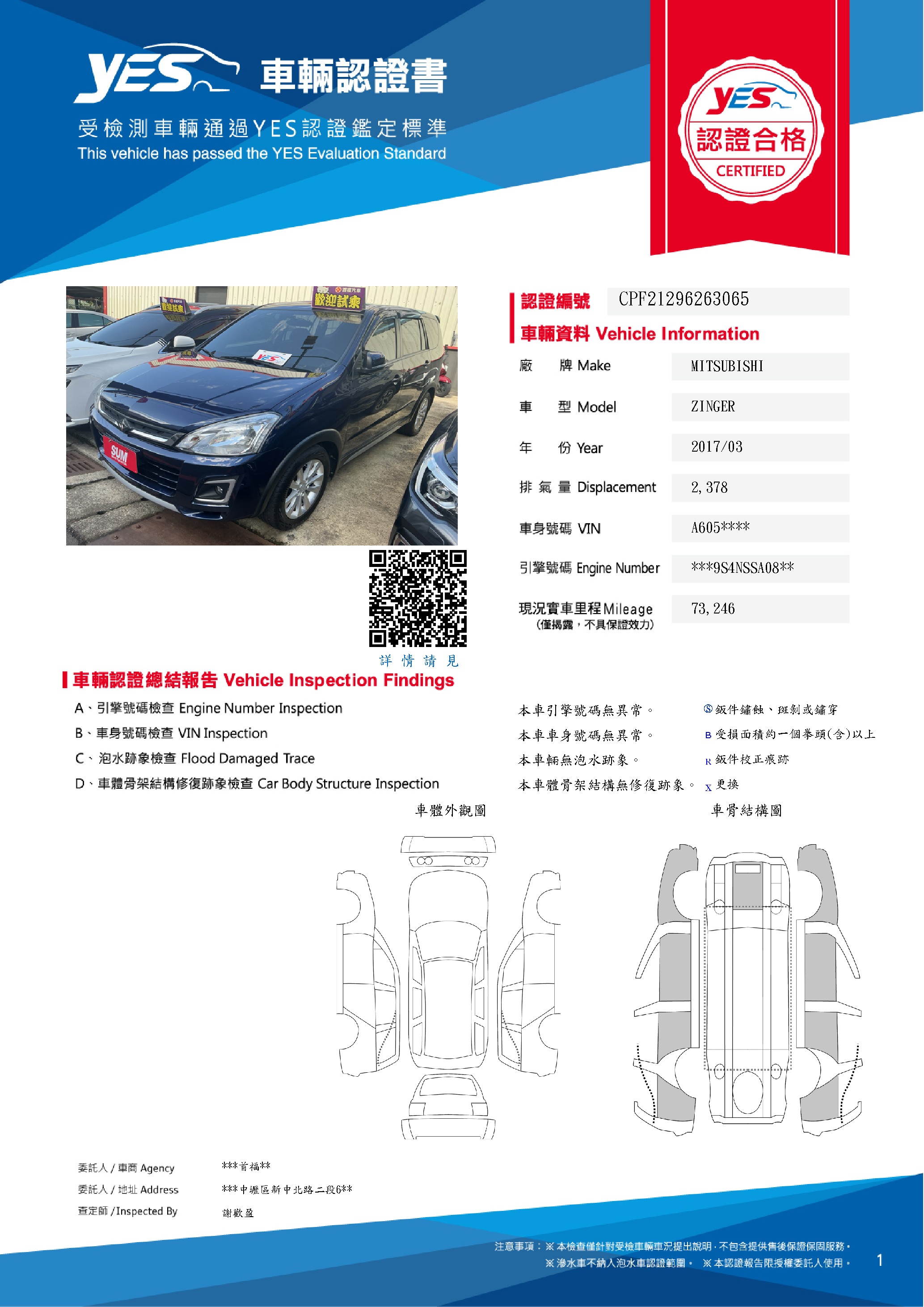本車已由YES專業查定師完成 153 項檢測