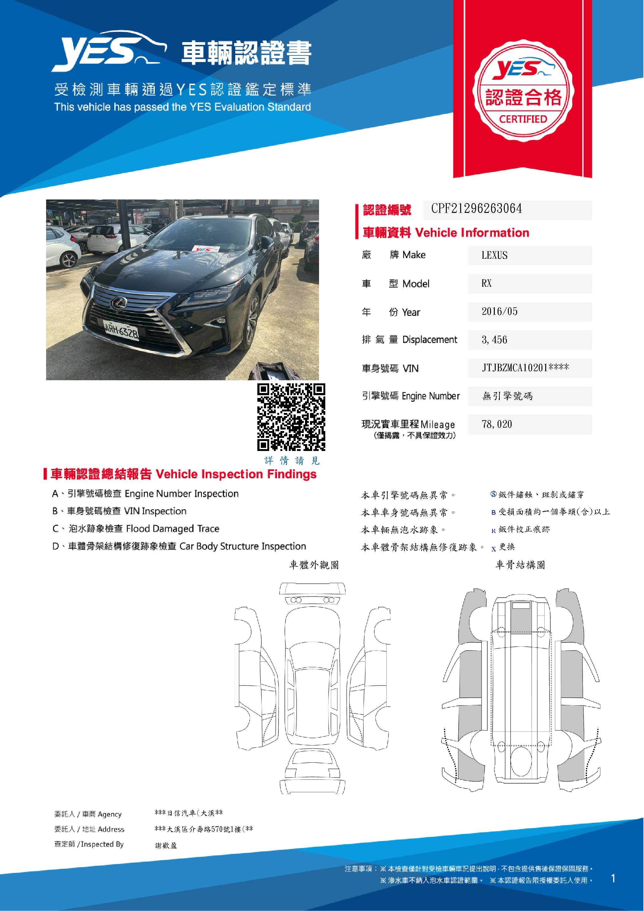 本車已由YES專業查定師完成 153 項檢測