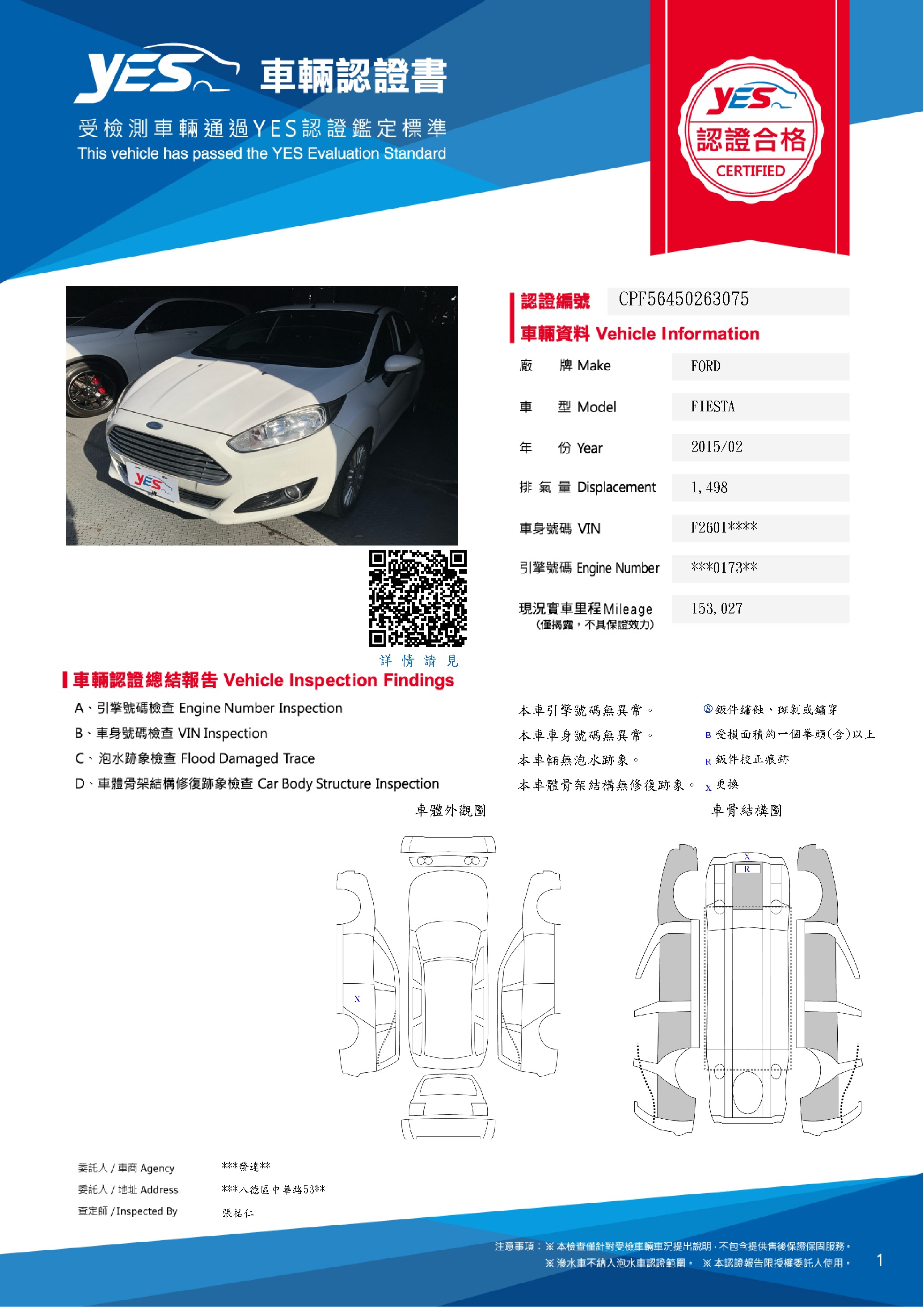 本車已由YES專業查定師完成 153 項檢測