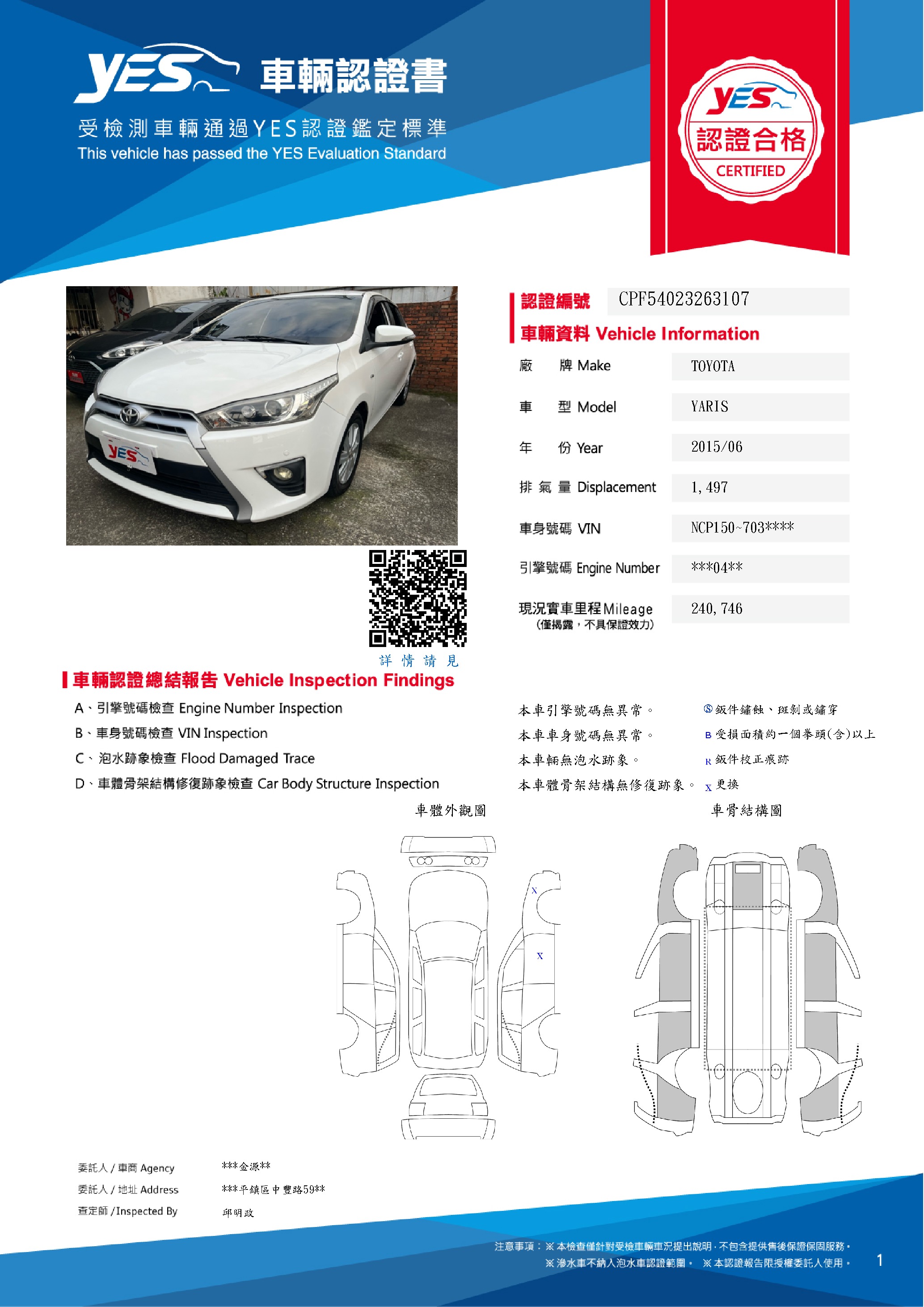 本車已由YES專業查定師完成 153 項檢測